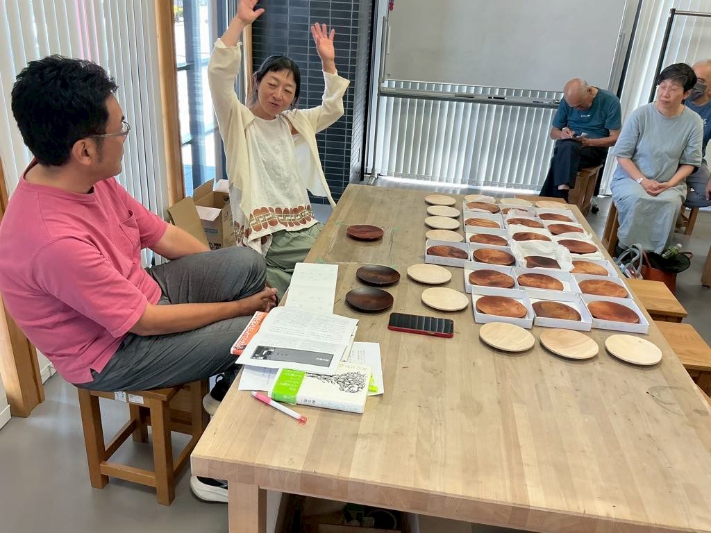 後半は會津稽古堂に移動して拭き漆の小皿制作です。吉田さんたち漆部会のみなさんのサポートのもとみなさま楽しんで取り組んでおられました。漆は漆部会が育てた漆から採取した会津の漆。木地は樹齢100年ぐらいの会津産の栃です。二枚目に挑戦する方も。