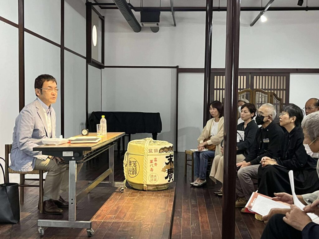 蔵人たちが酒造りを行なっている現役の酒蔵である嘉永蔵。その敷地内にある白漆喰が美しい蔵をお借りしての講演会です。